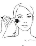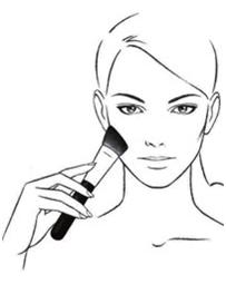 Prima di iniziare ad applicare il colore, rimuovete l’eccesso di prodotto dal pennello. Iniziate sotto gli zigomi, con leggeri movimenti rotatori. Stendete il colore verso l’attaccatura dei capelli.