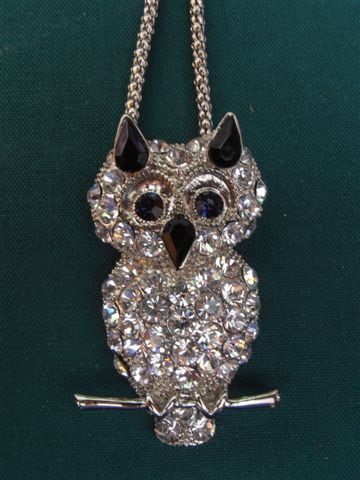 Acquisto n.1: collana con ciondolo a gufo. È alto circa 6cm e largo poco meno di 4cm, le orecchie e il naso sono neri, gli occhi invece sono blu scuri.