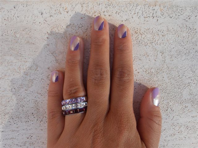 Perché l’ho fatto? Perché al mio compleanno il moroso mi ha regalato anello (in foro), collana e orecchini Très Jolie della Brosway e quindi ho voluto imitare i tre colori anche sulle unghie!