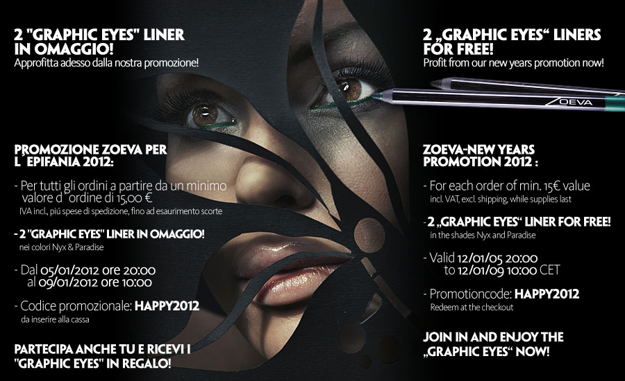 In occasione dell’Epifania 2012, Zoeva regala 2 matite per occhi a fronte di un acquisto minimo di 15,00euro. Sarà sufficiente aggiungere il codice promozionale HAPPY2012 al momento del pagamento. La promozione è valida fino 09 gennaio 2012, quindi affrettatevi!