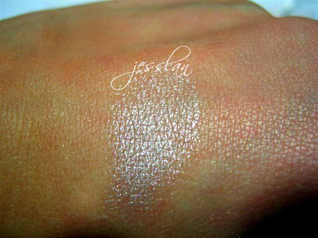È molto illuminante e trovo che sia perfetto anche da mettere sotto l’arcata sopraccigliare per illuminare lo sguardo. Si toglie molto facilmente, anche senza struccante, ma semplicemente con il latte detergente, e non si ferma nelle pieghette degli occhi. Qui sotto potete vedere lo swatch…la mano ha delle macchie rosse dovute al metti-togli-metti-togli dei vari ombretti; le foto infatti sono state fatte tutte nello stesso giorno!