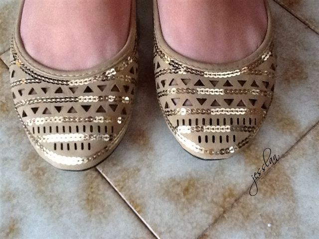 Per consolarmi della loro possibile uscita di scena, c’è stata una new entry: ballerine color cammello, traforate e con paillettes dorate. I miei nerd colleghi le hanno addirittura notate e detto che sono carine! Wow! Evento straordinario! A me pareva facessero troppo Aladdin, che fossero un po’ troppo in stile arabeggiante, ma sono stata smentita, meglio così! Avevo decisamente bisogno di un acquisto scarposo!