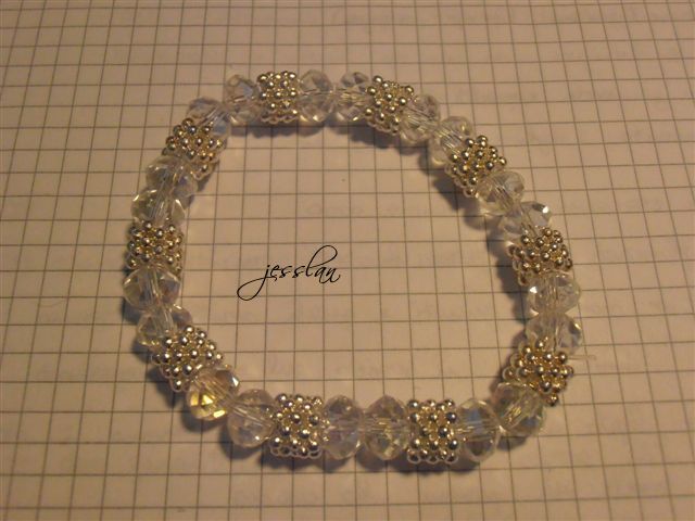 Seguono due braccialettini, anch’essi abbastanza sbarluccicosi. Da notare lo sfondo a quadretti del quaderno degli appunti: