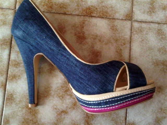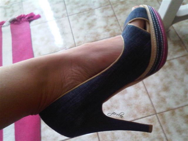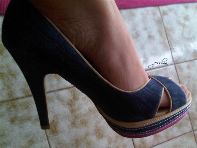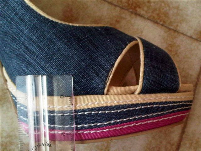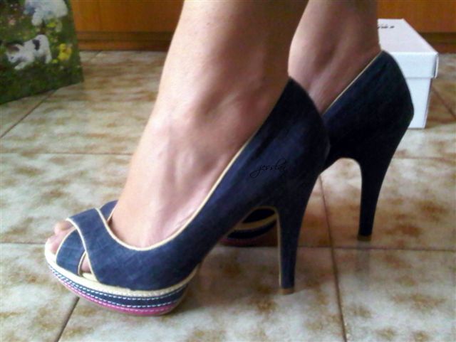 Sono delle open toe, intrecciate davanti, tacco 11cm e plateau di 2.5cm. Nonostante io non sia una fan sfegatata del plateau devo dire ch questo non mi dispiace, anche se è esterno e di tre colori: beige, blu-jeans e fucsia.