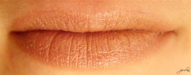 Il package è nero, il colore è abbastanza chiaro, lascia un velo dorato sulle labbra ed è opaco.