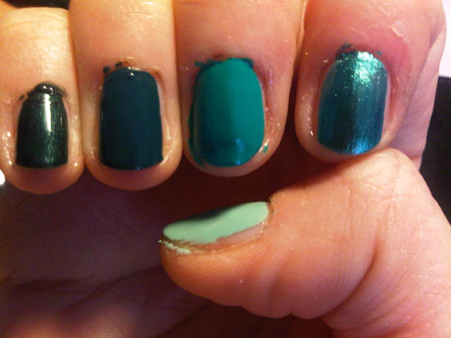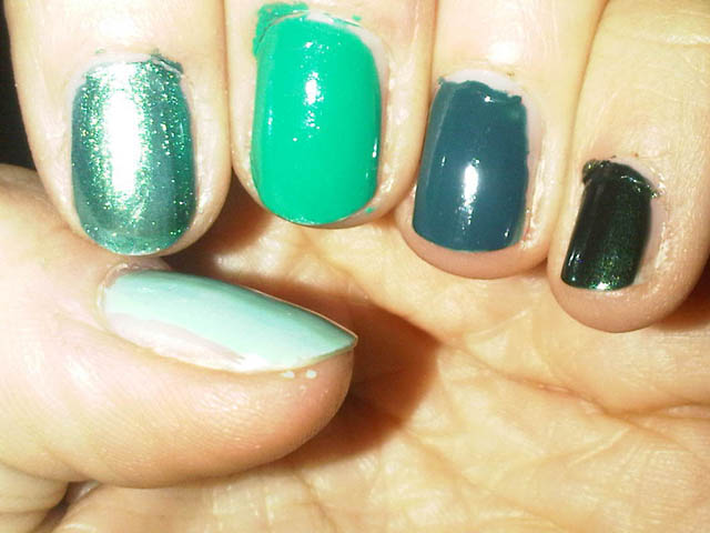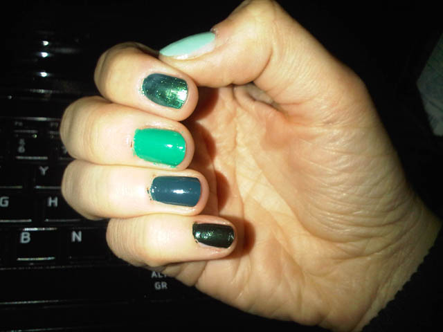 Come credo abbiate capito è iniziato il mio Periodo-Verde! La scorsa settimana mi sono dilettata con una manicure composta da 5 verdi diversi:
