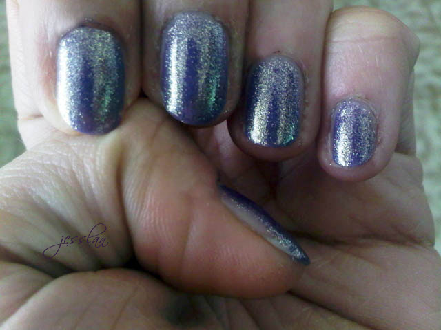 È un po’ più scuro di come appare in foto. Appena messo sembrava quasi sbiadito, meno brillante di quando era bagnato, con un top coat sarebbe stato meglio probabilmente; ad ogni modo è durato cinque giorni e non ho fatto fatica a rimuoverlo.