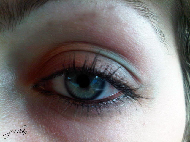 Ho applicato prima l’arancione su tutta la palpebra mobile e l’ho sfumato sul lato esterno con l’ombretto della Essence, che non so se definirlo blu ottanio, blu petrolio o una qualche sfumatura di verde. Il risultato a me piace, voi cosa ne dite?