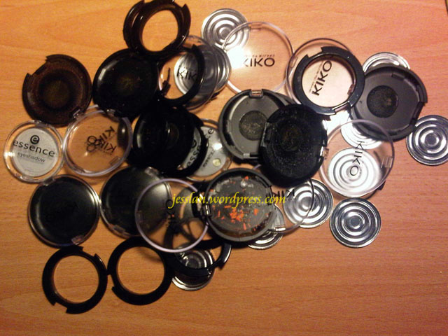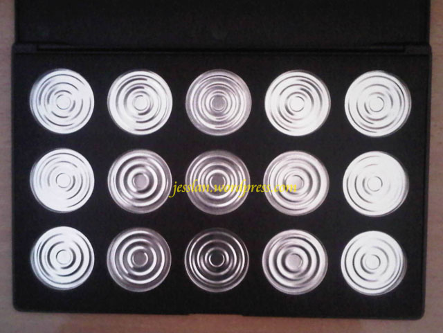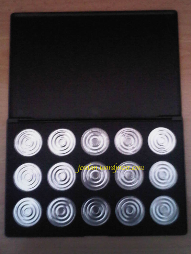 Circa un mesetto fa acquistai su ebay una palette vuota, nella quale potevano stare 15 cialde da 36mm. La dimensione è esattamente quella degli ombretti mono di Essence e di Kiko. Ieri è arrivata e, ovviamente, mi sono messa subito all’opera.