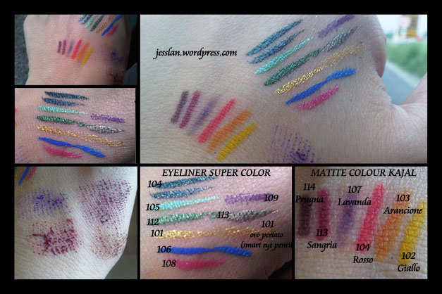 2. I colori che hai scelto sono i miei due preferiti (mi piacerebbe acquistare il 101 per fare il confronto con quello della Urban Decay che dovrebbe arrivarmi a breve.. ma a cosa mi servono 2 eyeliners oro?) insieme al blu elettrico e al verde giada! Sembra stupendo il kajal giallo, ma poi non so se lo utilizzerei! Buon inizio di settimana 😀