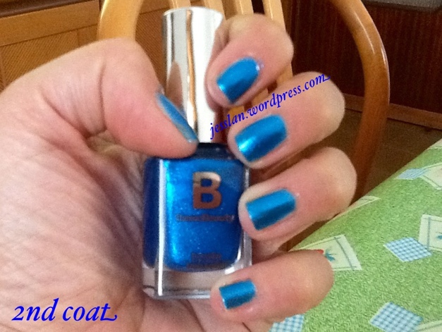 Attualmente ho le unghie molto corte, quindi due passate sono state sufficienti, ma credo si possa dire la stessa cosa anche per unghie lunghe. In questo caso non ho applicato il top coat, perché era già sufficientemente lucido, ma questo ha comportato una durata di soli due giorni, prima di vedere la comparsa della righettina bianca su due unghie.