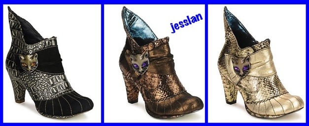 Altro modello a tema gattofilo sono degli ankleboots, che sinceramente a me ricordano gli stivaletti indossati in quei film tipo “Guerre stellari”. Sono presentati in tre colori: nero, bronzo e oro. Prezzo 123€.