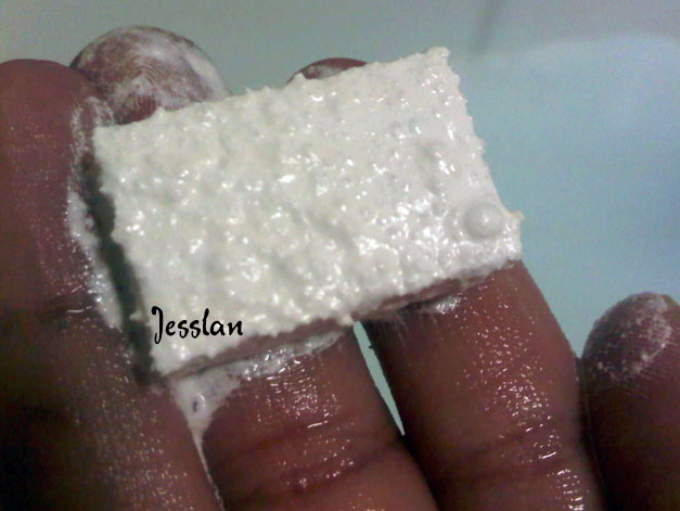 Sulle dita mi è rimasta una patina bianchissima, morbida e profumata! L’unica funzione di questa tab è quella di profumarvi l’acqua, perché non generando schiuma non può servire per lavarsi!