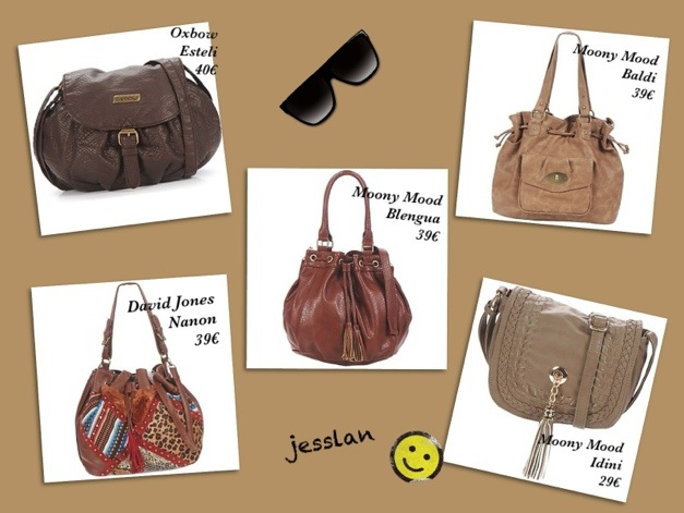 Tranne la borsa di David Jones, che è decisamente eccentrica, le altre sono tutte piuttosto sobrie, sui toni del marrone e del taupe, così da essere facilmente abbinabili. Personalmente non amo le borse grandi color taupe, perché spesso mi sembrano troppo da vecchia, mentre così piccine sono decisamente simpatiche. La mia preferita, come sempre, è quella al centro: la Moony Mood Blengua, che si può portare sia a mano che a spalla (c’è la tracolla dentro). Devo dire che anche la Oxbow non mi dispiace, perché ha una forma particolare e, soprattutto, perché si chiude meglio (perlomeno c’é un bottone e non solo due cordini da tirare).