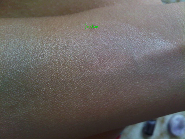L’ho comprata da un sacco di tempo, ma l’ho usata ben poche volte. È morbidissima, si stende benissimo e ha un ottimo profumo, ma è troppo perlescente per i miei gusti. Vi faccio vedere com’è applicata sul braccio.
