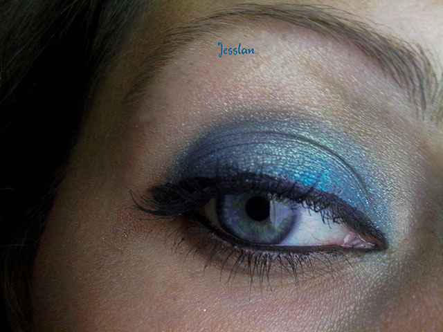 Faceva parte dei vari regalini di compleanno e finora l’avevo sempre usato asciutto per sfumare altri azzurri. In queste foto lo vedete utilizzato bagnato e non sfumato. Non ho usato nessun altro ombretto, tutto lo sbarluccicume che vedete è opera solo del Blue Moon. Lo trovo delizioso! Oltre a quello ho usato il primer della Essence, l’eyeliner Precision, la matita kajal nera e il mascara luxurious lashes di Kiko. Qui ci sarebbero state benissimo le ciglia finte che ho ordinato nei giorni scorsi, giusto per dare quel tocco in più! Non ne ho mai provate e sono curiosa di farlo!