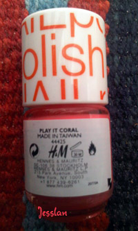 Buongiorno care! Oggi parliamo di uno smaltino di H&M e precisamente di Play It Coral, venduto in questo periodo nei negozi (probabilmente vicino alle casse) a 0.95€.