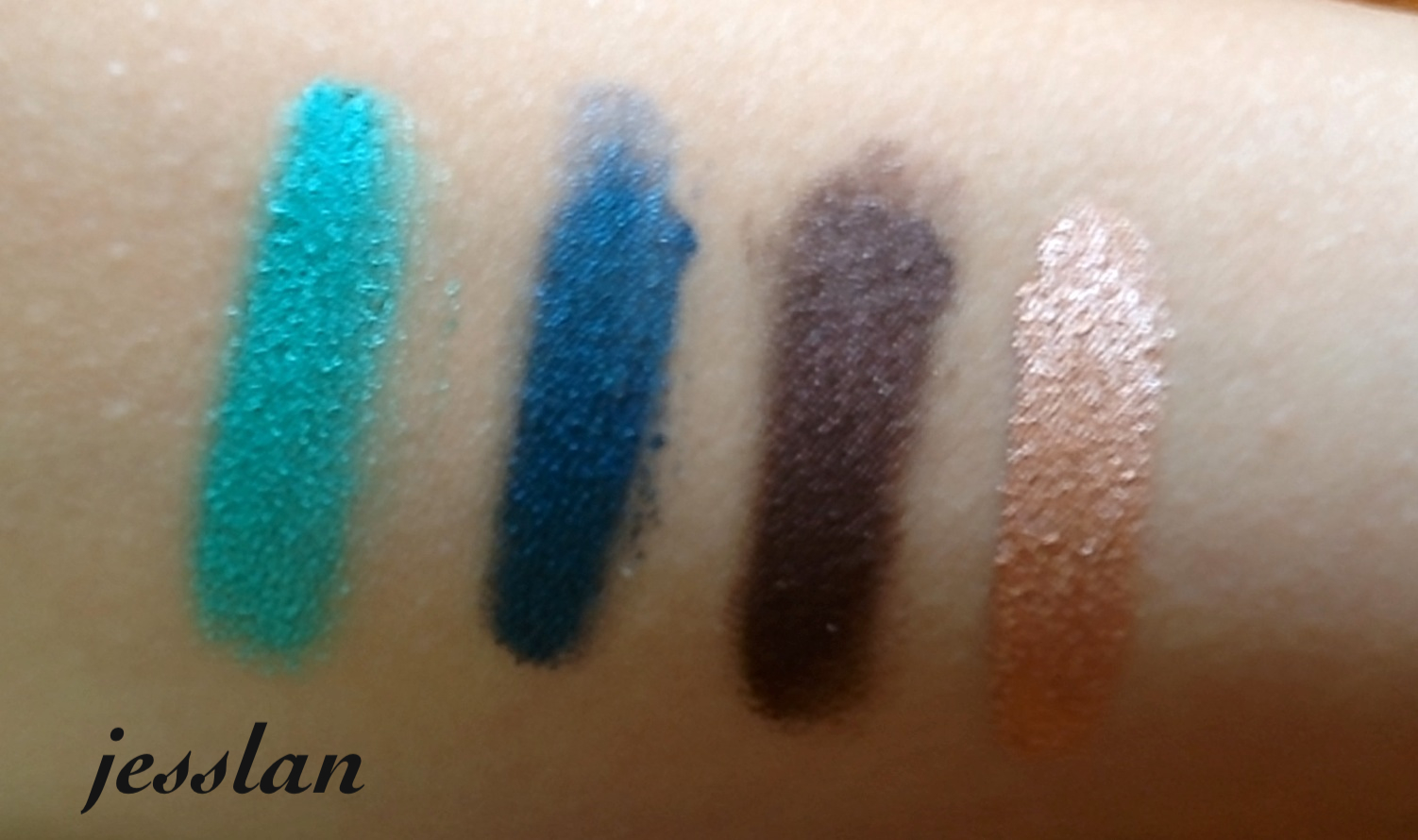 Il verde è molto brillante, si stende e sfuma bene. Il blu petrolio è quello più problematico dei quattro, perché mi sembra più oleoso degli altri e quindi è necessario stenderlo con più cura, mettendo più strati, per evitare che rimanga striato.