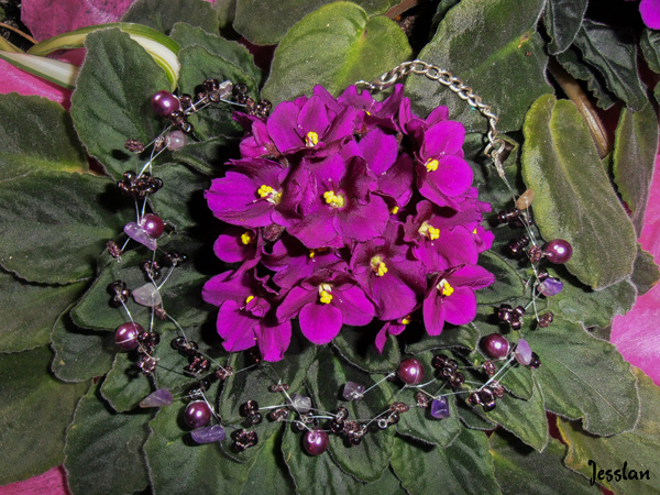 Contrariamente alle precedenti, questa collana è parecchio pesante, ma io la trovo deliziosa e la ritengo una delle mie migliori creazioni! Ho altre tre collane viola, una lunga tutta di agata, una di mezzi cristalli sferici (non sfaccettati come questi) e un’altra con mezzi cristalli di forma schiacciata…ma mica posso mostrare solo collane!