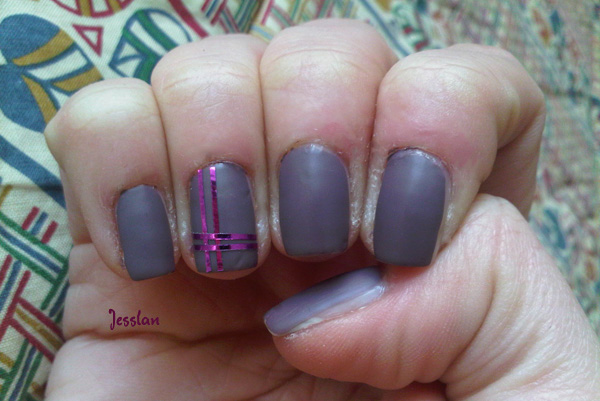 Ho applicato il top coat mat di H&M per ottenere un finish opaco e ho attaccato gli scotchini fucsia sui due anulari.
