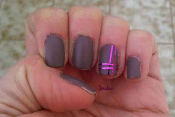 Trovo che lucido sia più bello, ma anche opaco non è male. È molto elegante questo colore! Sfortunatamente, però, non avendo applicato un’altra mano di top coat sulle unghie, gli scotch si sono staccati in fretta, rimanendo dapprima argentati (si è tolta solo la pellicola fucsia sopra) e poi sfogliandosi del tutto.