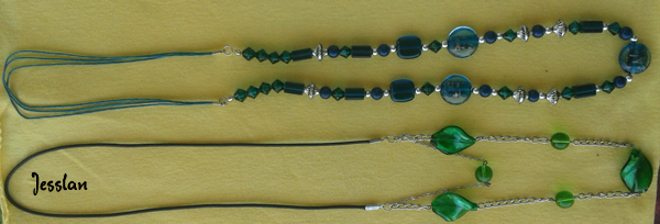 Le mie collane verdi sono tre, ma una non la trovo quindi ve ne mostro due! La prima è acquistata, ma ho in mente di rielaborarla a breve, perché non mi piacciono tanto gli inserti argentati di plastica. La seconda, invece, è una delle mie creazioni ed è tutto vetro.