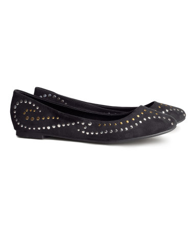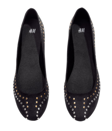 Novità invece sono queste ballerine, sembrerebbe in camoscio spazzolato, nere con borchie oro e argento. Il prezzo è di 149sek, circa 18€.