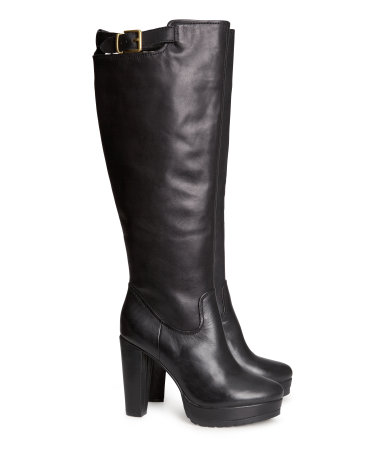 Un secondo stivale, invece, sempre dal gambale alto, è completamente di pelle, ha tacco 11cm e plateau di 3cm e costa 999sek, 99€ sul sito italiano.
