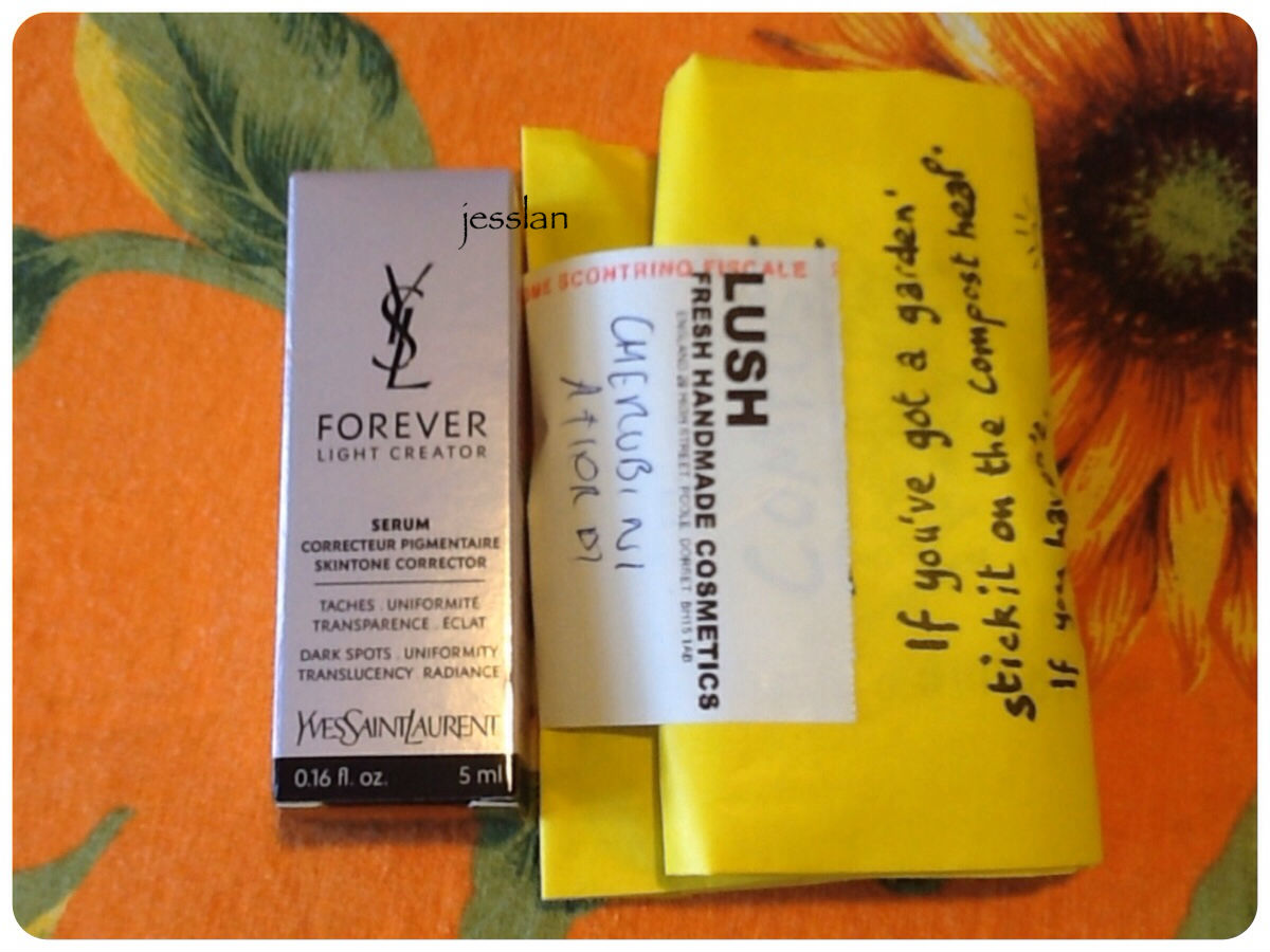 Da Douglas un campioncino dell’illuminante di YSL [coupon], ritirabile anche in altre profumerie con un altro coupon. Campioncino del detergente viso Cherubini a fior di pelle di Lush.