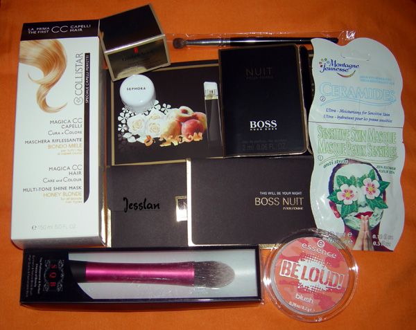 Da Sephora in stazione Centrale a Milano ho comprato la CC Cream della Collistar, approfittando del 20% di sconto. Mi hanno dato in omaggio un campioncino (ino) di profumo di Ugo Boss e, giorni prima, senza acquisti, mi avevano dato una jarettina con il Dreamtone2 di Lancome. Sempre in stazione Centrale, c’è il negozietto di Elizabeth Arden, quindi ne ho approfittato per ritirare il campione gratuito, ovvero 7 sieri monodose in una deliziosa scatolina dorata. La maschera e il blush della Essence sono regalini di Manu, mentre i due pennelli sono acquisti su ebay di un mesetto fa, ma sono arrivati in questi giorni.