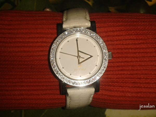 Non ho orecchini, bracciali o collane di colore bianco, se ne riparlerà quando parleremo di trasparenze e quindi cristallo. L’unico accessorio bianco è un orologio di Manfredi, con i brillantini e il cinturino in pelle.