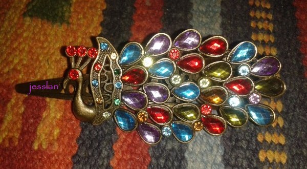 Molletta per capelli o ferma-sciarpa (0.98$): a forma di pavone, super colorata ed estiva.