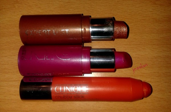 I rossetti che tengo in borsa sono due rossetti della NYC, uno marrone e l’altro magenta. L’altro è il Chubby Arancione di Clinique.