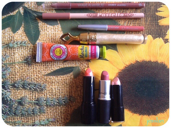 La mia famiglia nude è composta da: pastello Psiche di Neve Cosmetics, matita Coral beige di Wet ‘n’ Wild, matita Nude coral di Essence, Twig di M.A.C, #01S Nude di Shaka, #32 di Extreme, gloss Guerlain, Mocha orange di Figs&Rouge.