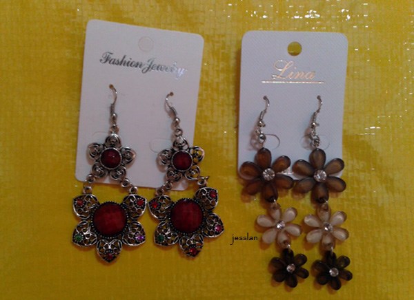 I gioielli mi piacciono, la chincaglieria in generale mi attira follemente! Mi piacciono sia gli orecchini, sia le collane! Ultimamente un po’ meno i braccialetti, perché lavorando spesso mi danno fastidio. Quindi ecco due orecchini.