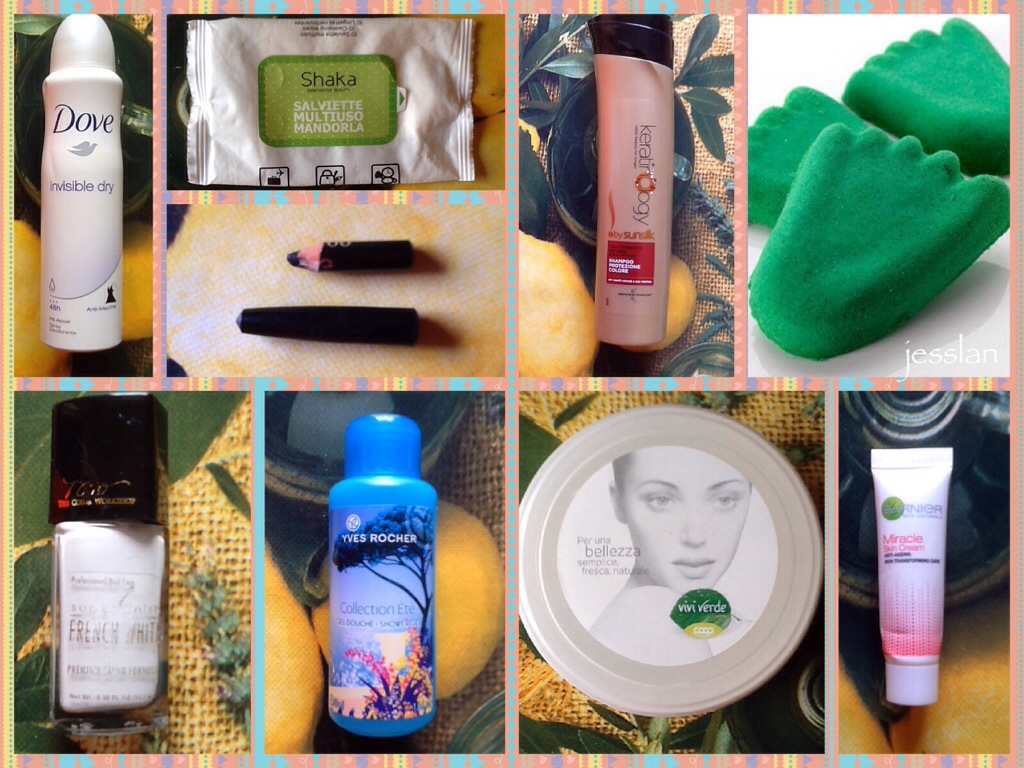 English summary. Months are running, it’s incredible! This month I’ve finished a shampoo for colored hair, which is good, but not too different from many other. A body butter cream of Vivi Verde Coop, which I’ve really appreciated, it takes quite a long time to dry, but my skin is really silky. I liked also the sample of Garnier Miracle Skin Cream, which is a colored cream and I prefere this product instead of foundation. I used Lush Stepping Stone, that you can see here. I threw away a nail polish, because it was dry. At last, I finished a black kajal of Kiko (its durability is very good and it’s useful also for smoky eyes, because it’s enough soft) and a gel shower. What did you finish on June? Love you all.