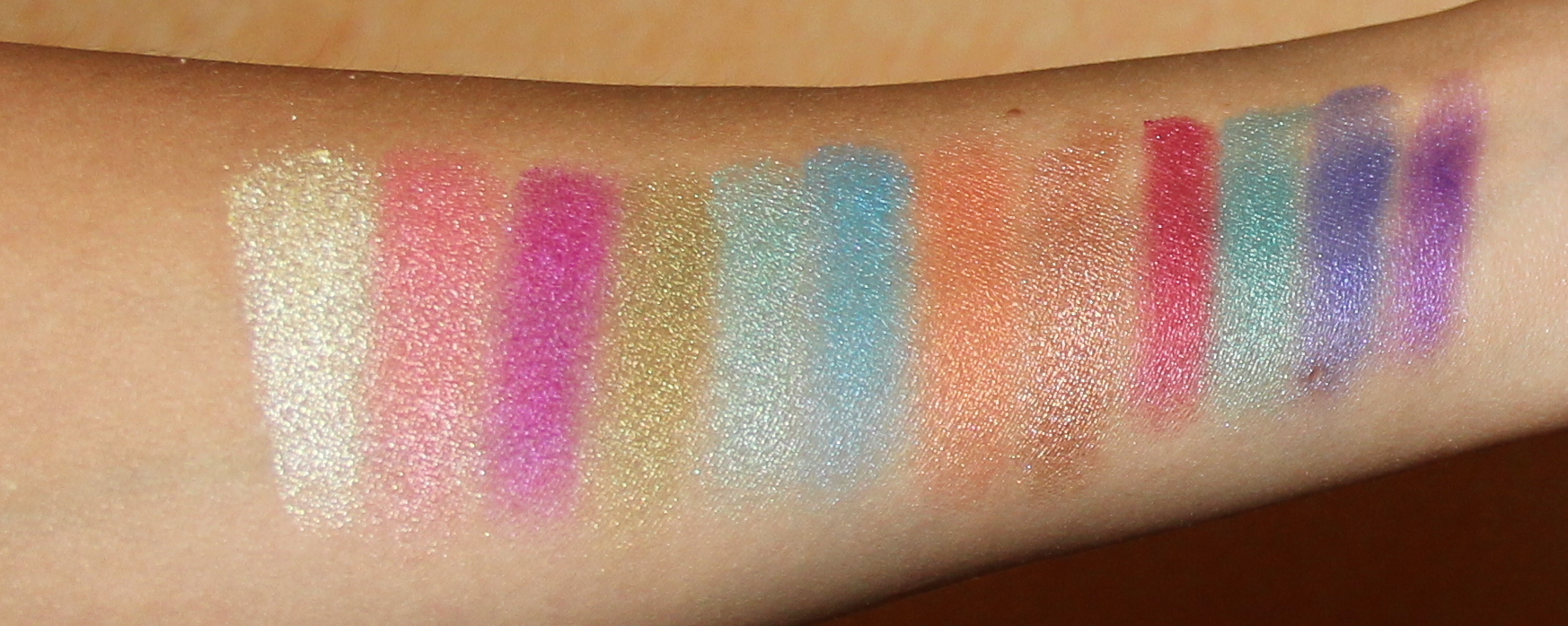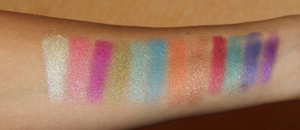 La texture è morbida, a volte sembrano quasi cremosi. La scrivenza è ottima sia per i colori più scuri che per quelli più chiari e risultano tutti piuttosto saturi, come del resto appare evidente già al primo sguardo della palette. Il finish degli ombretti è decisamente shimmer, quasi metallizzato in alcuni casi.