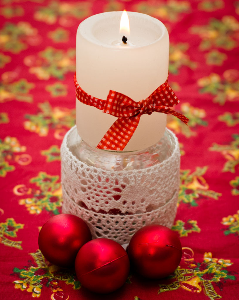 Buongiorno! Dopo avervi parlato degli ornamenti per l’albero di Natale, ecco qui un po’ di decorazioni natalizie! Pochi giorni fa ho comprato un piccolo centro tavola porta candela, da mettere sul mobile della televisione e decora tantissimo! Nel centro della tavola, invece, ho messo un vaso di ottone abbastanza grande con del pungitopo, raccolto domenica…i colori di questa composizione (oro, verde e il rosso delle palline) richiamano perfettamente sia la tovaglia che le decorazioni sul nostro albero!