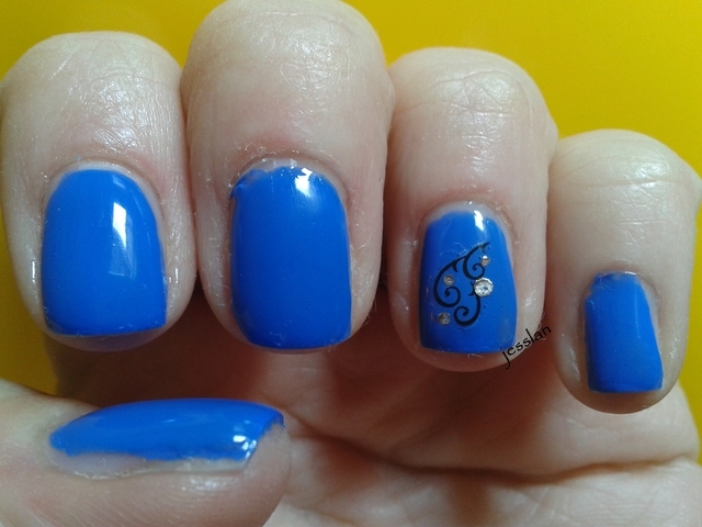 Ho applicato due mani dello smalto Sky Blue di H&M e l’unico vezzo è stato un adesivo sull’anulare sinistro.