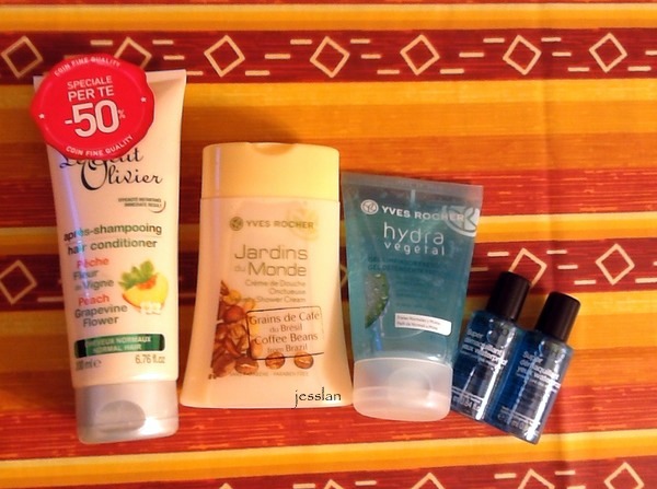 Durante una passeggiata a Legru con Fefy, invece, ne ho approfittato per comprare un balsamo alla pesca di Le Petit Olivier scontato al 50% da Coin (1.95€!), un docciaschiuma al caffè da YR che mi ha permesso di avere in omaggio un gel detergente viso e due struccanti bifasici di Sephora.