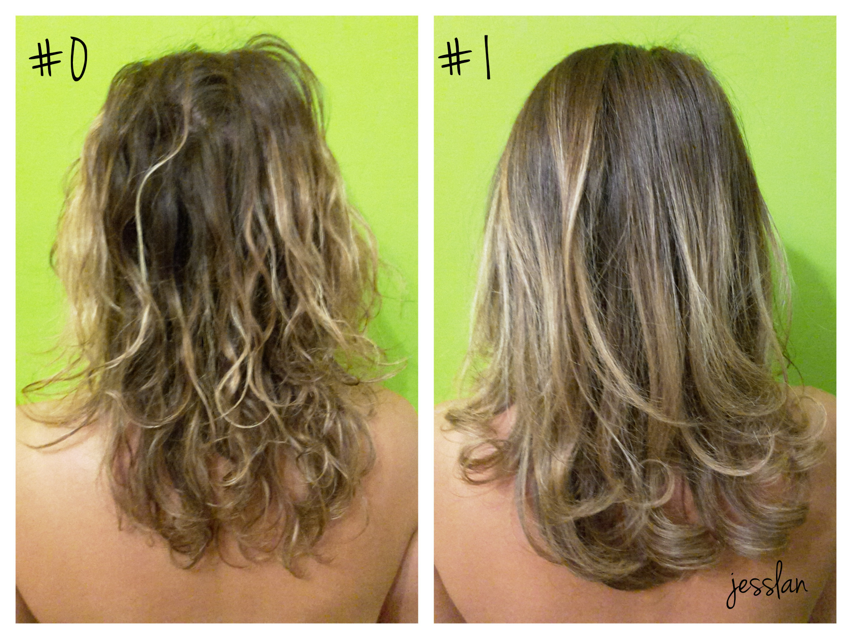 La foto di sinistra è stata scattata il giorno in cui sarei andata a fare la ricostruzione. Poiché mi ero dimenticata di farla il giorno prima dopo aver lavato i capelli, me la sono fatta scattare la mattina stessa appena sveglia. La foto di sinistra è scattata quattro ore dopo la piega invece.