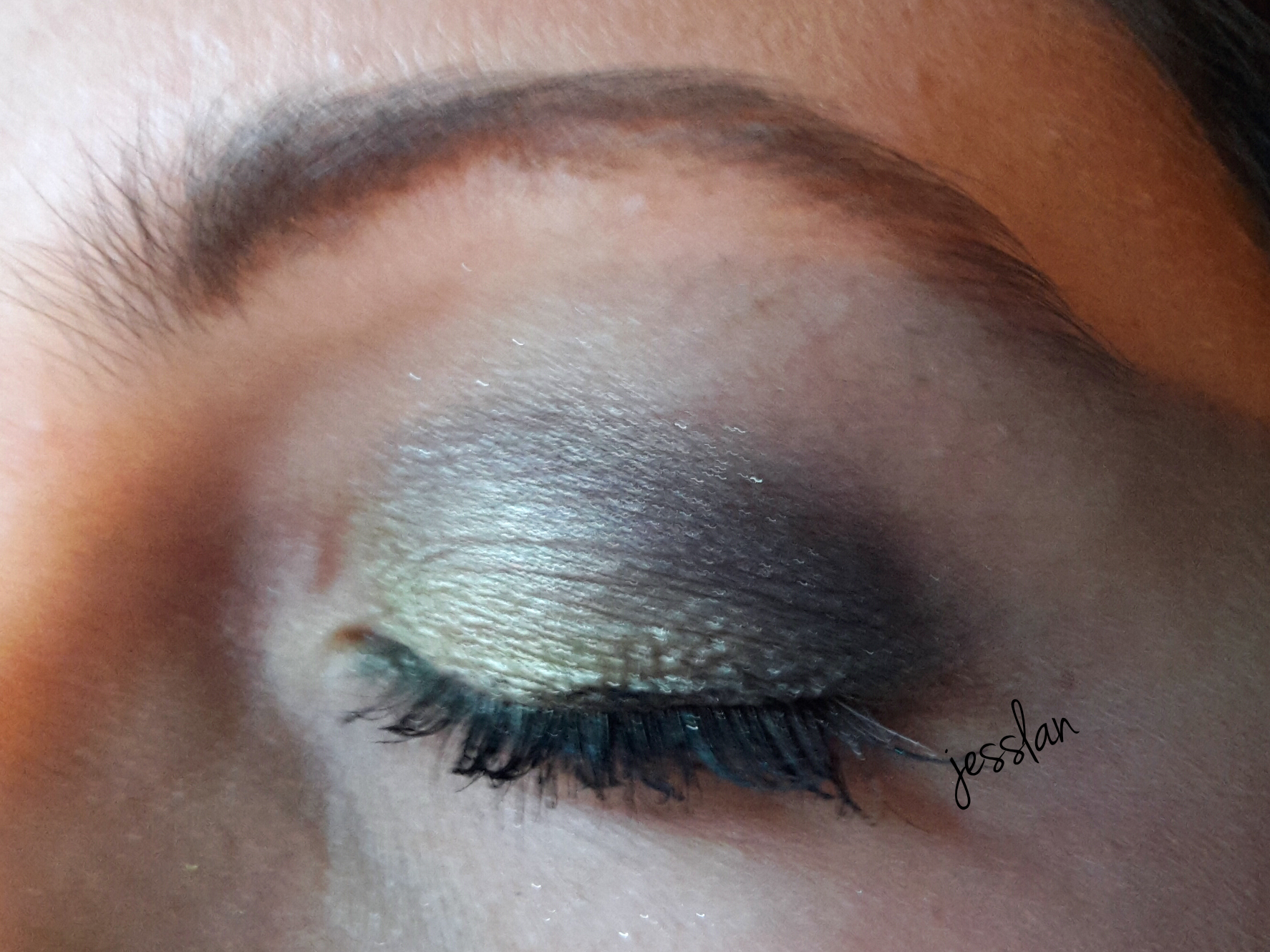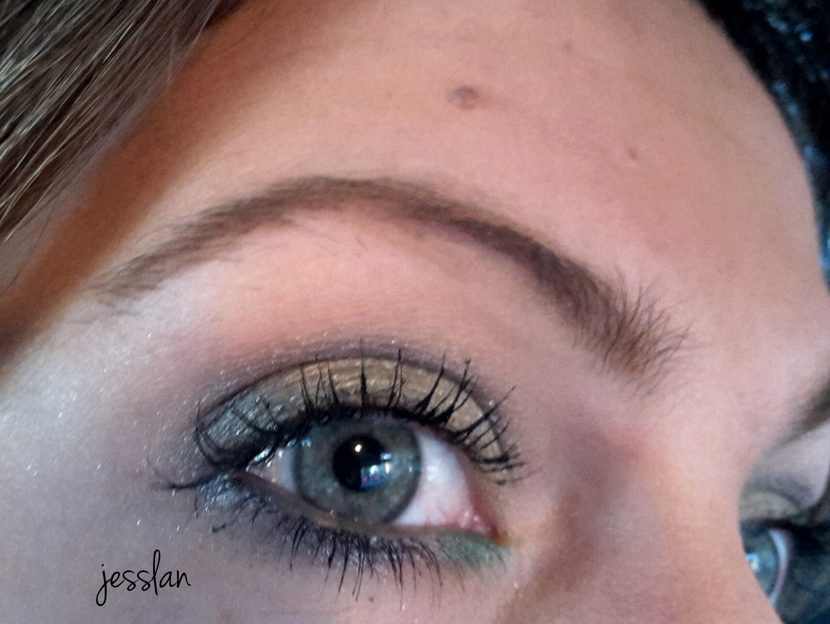 Come mascara ho usato il Lancome Hypnose Drama. Le sopracciglia le ho riempite con l’ombretto del kit sopracciglia di Essence [review]. Sotto l’occhio ho usato la matita verde acido di Boujour e una matita grigia di Kiko.