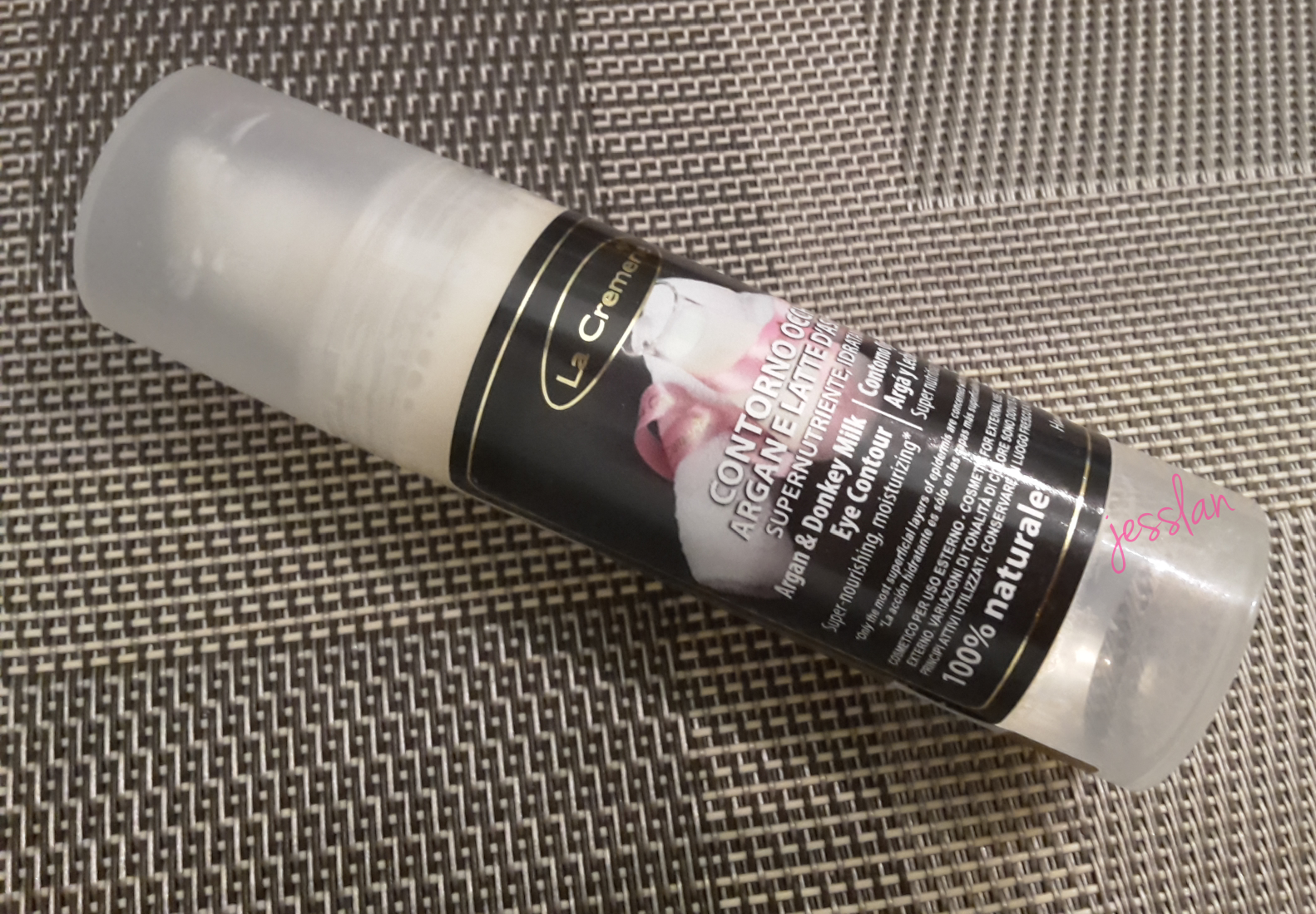 Il prodotto si presenta di colore bianco e consistenza lattiginosa. È un contorno occhi a base di Argan e latte d’asina, super nutriente e idratante. Le indicazioni di utilizzo dicono di applicare mattina e sera una piccola quantità direttamente sulla zona del contorno degli occhi e massaggiare fino a completo assorbimento.