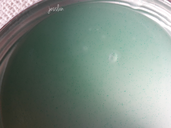 Il prodotto si presenta come un gel abbastanza liquido, di colore verde chiaro, con dei microgranuli, quasi impercettibili, di colore verde leggermente più scuro.