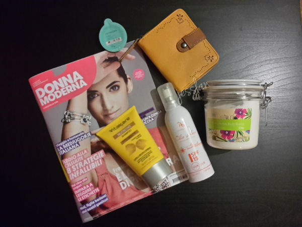 WikiFefy, che è sempre aggiornata su tutte le uscite, mi ha portato un Donna Moderna con uno shampoo Vitalcare, poi un olio spray spf15 Alkemilla che ha ricevuto con la box UDV di questo mese è il burro corpo al melone di una ed.lim. del Lidl.
