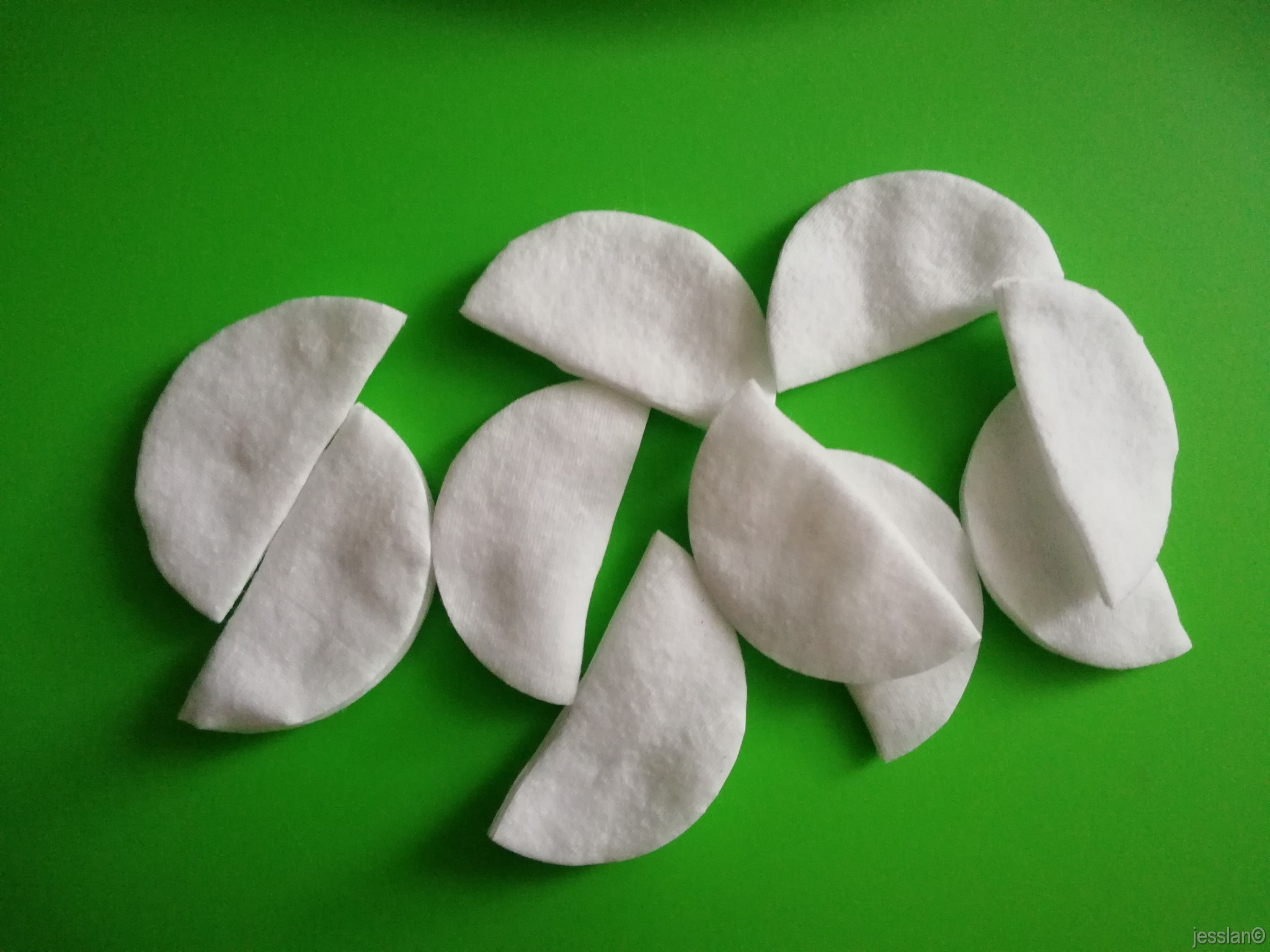 • 5 dischetti di cotone, di dimensioni normali, che dovrete tagliare a metà