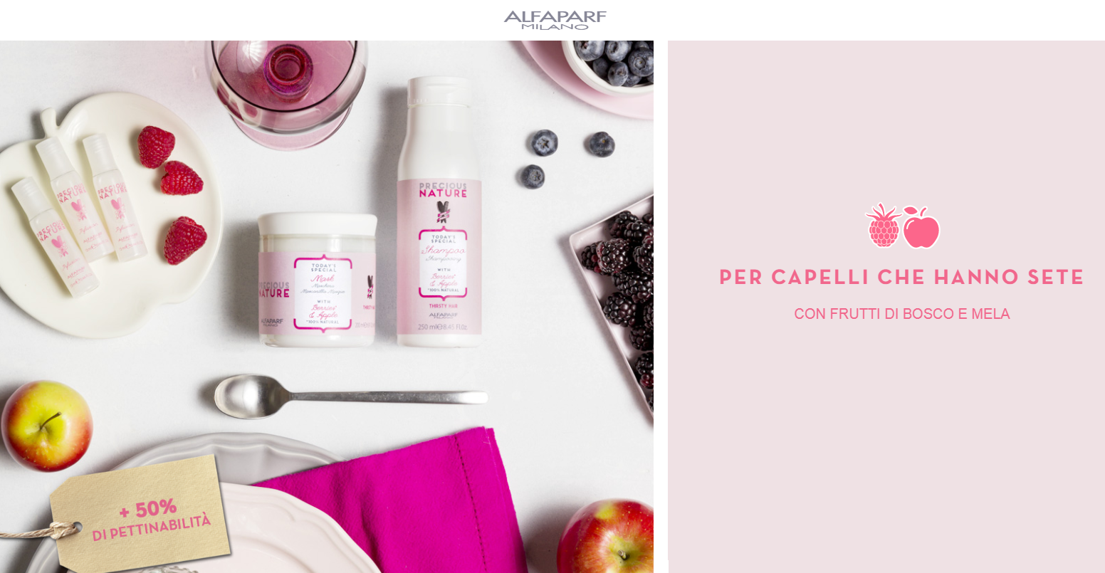 Ha una formula naturale, arricchita con oli ed estratti di mela, mirtillo, lampone e ribes 100% naturali. I frutti di bosco contribuiscono alla protezione quotidiana dei capelli, mentre la mela aiuta a mantenere il capello dissetato. Il profumo è davvero fantastico e piacevole, è dolce ma non risulta stucchevole.